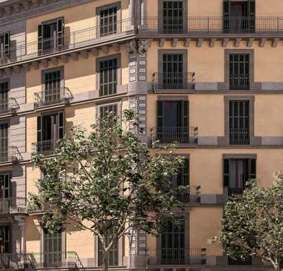 Rehabilitación integral de conformidad con las especificaciones técnicas y cromáticas indicadas por el departamento de patrimonio del Ayuntamiento de Barcelona.