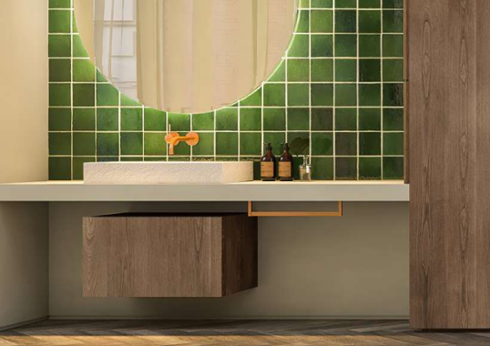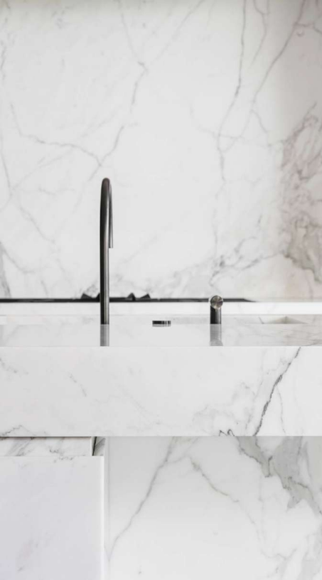 Lavamanos de mármol macael sobrepuesto sobre encimera  acabado microcemento.